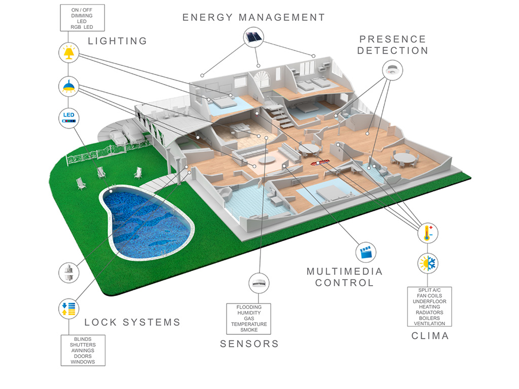 Objedinjujući upravljanje grejanjem, hlađenjem, ventilacijom, rasvetom, roletnama, sigurnosnim sistemima,